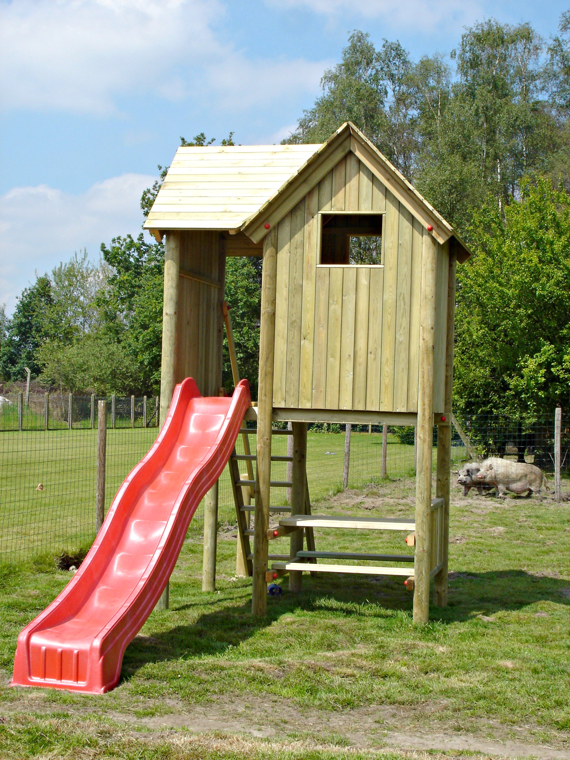 Speeltuigen, houten schommels en speeltorens