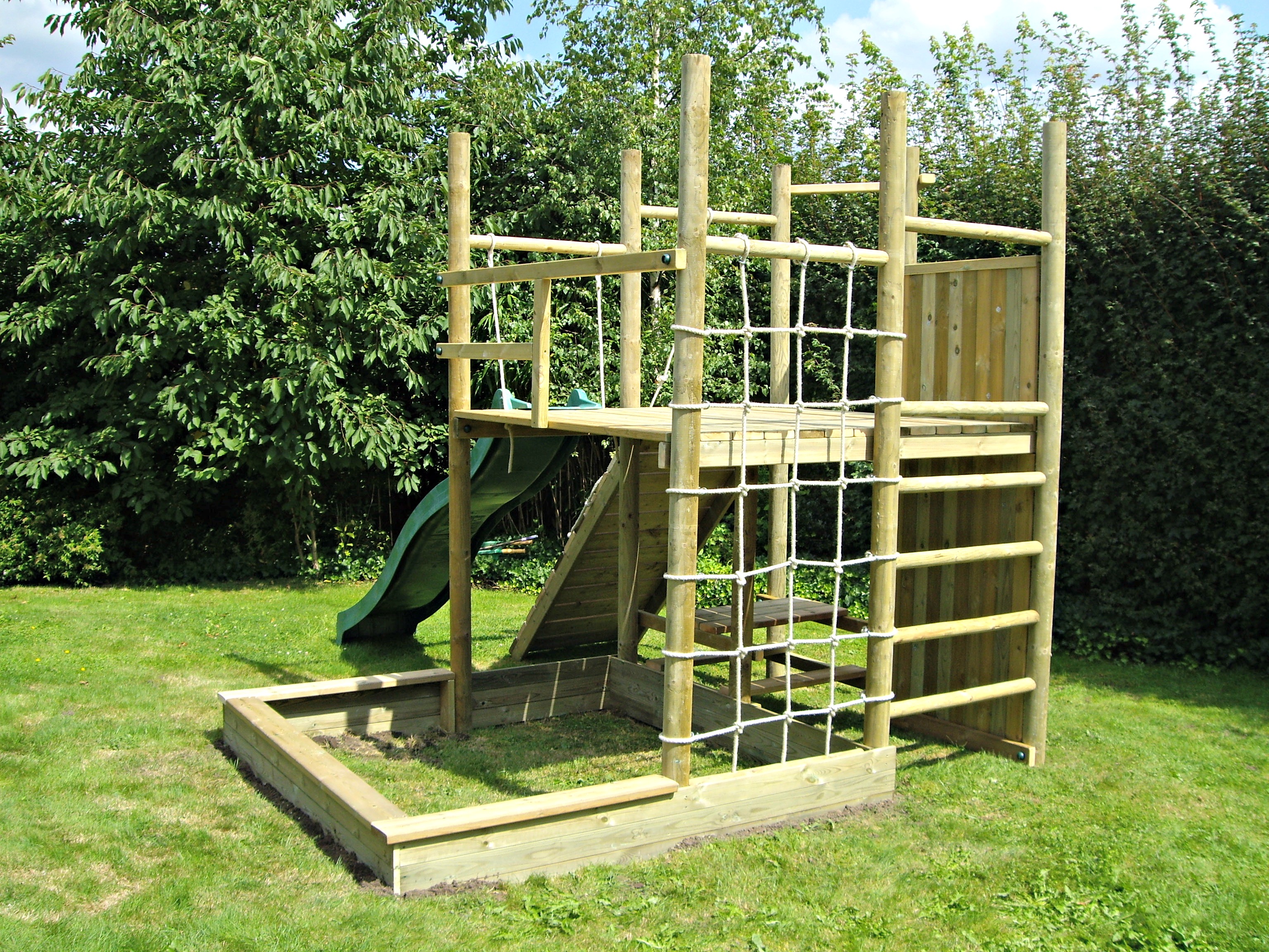 Een avontuurlijk houten speeltuig voor uw tuin.