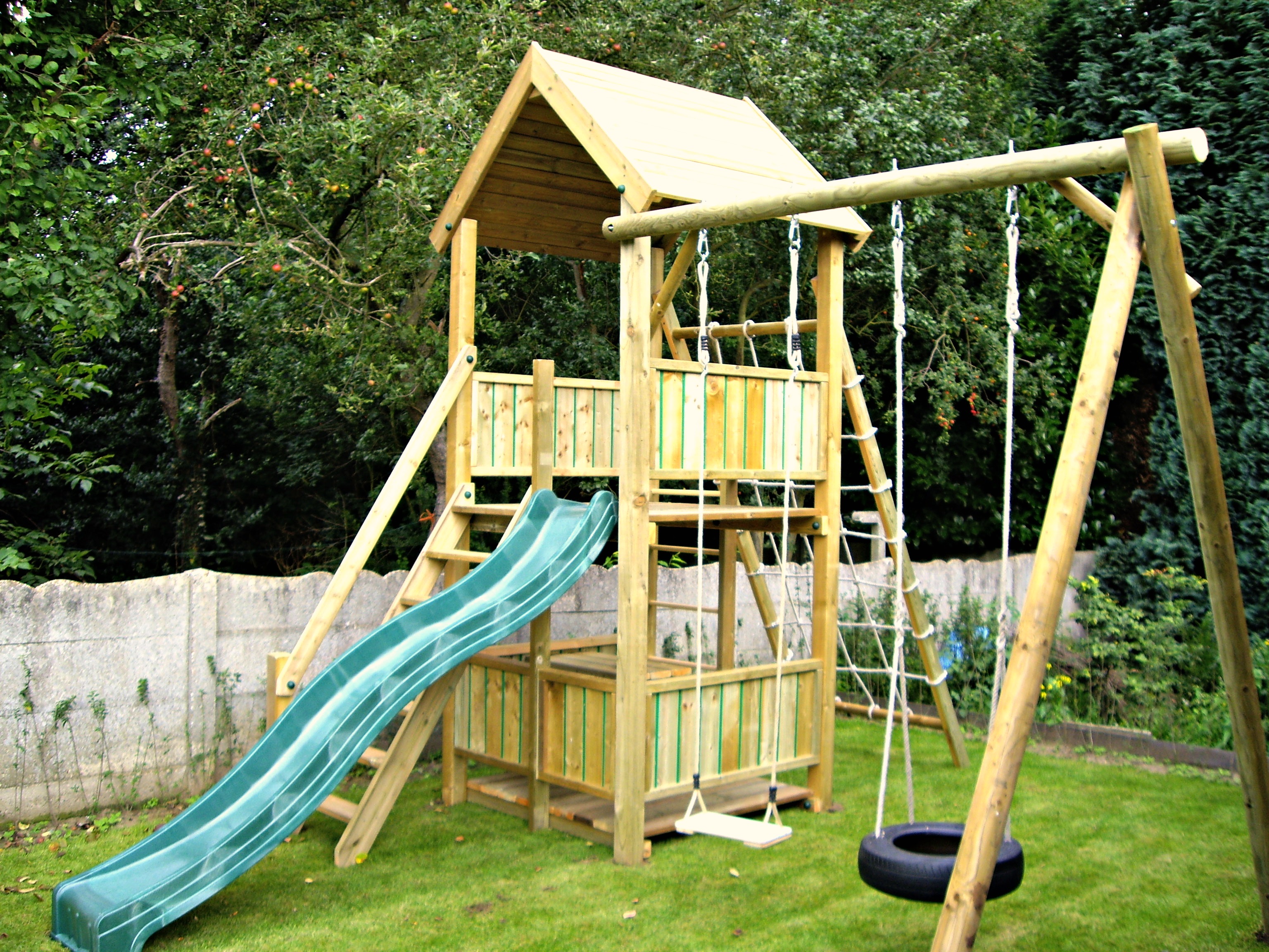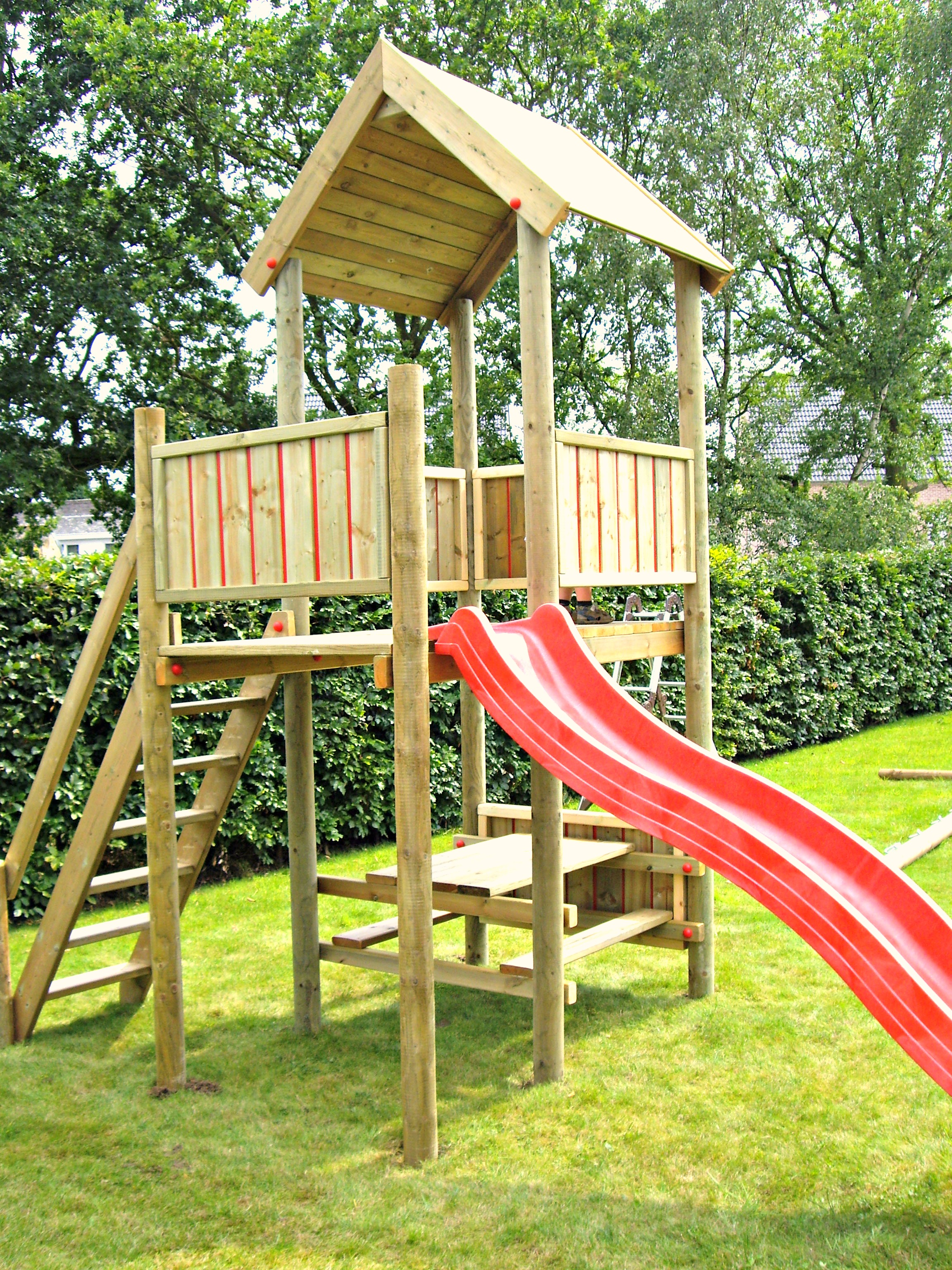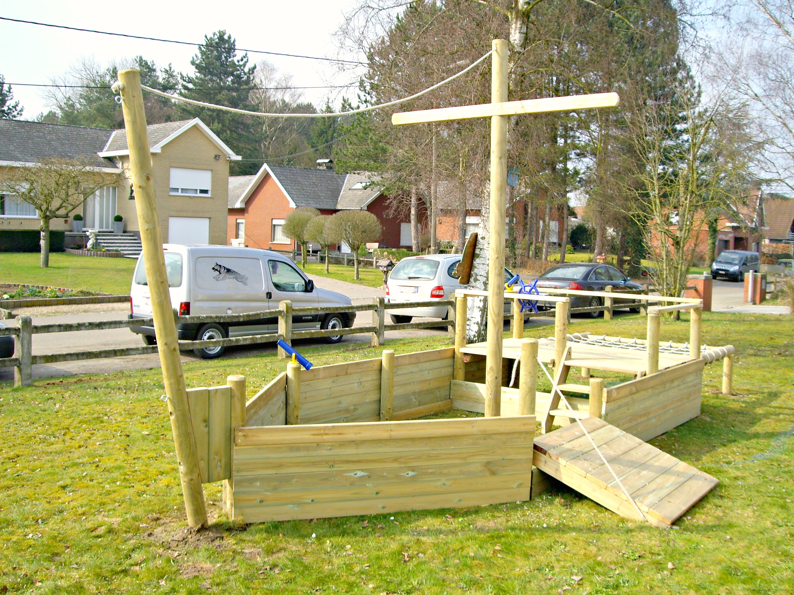 Een avontuurlijk houten speeltuig voor uw tuin.
