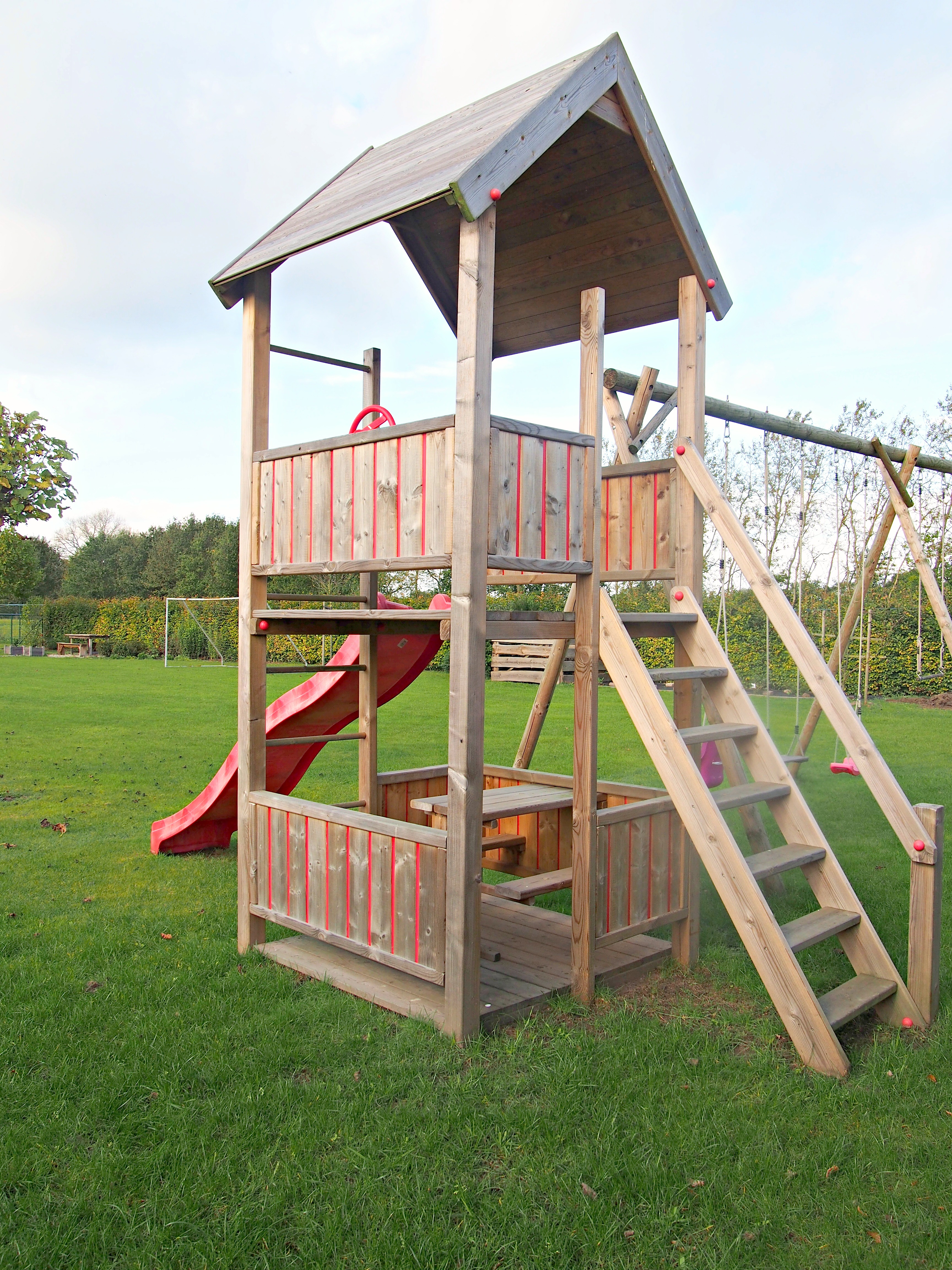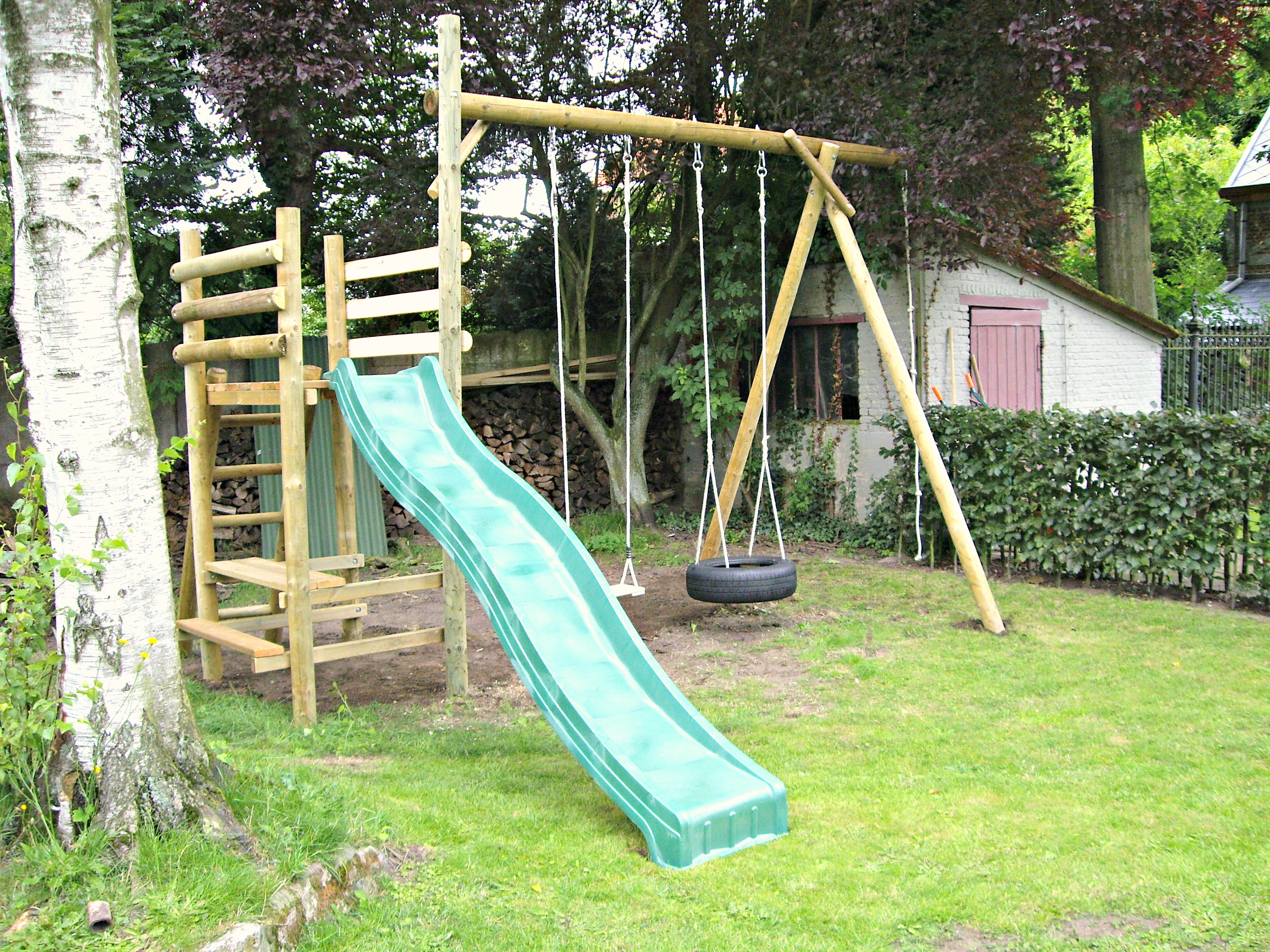 Speeltuigen, houten schommels en speeltorens